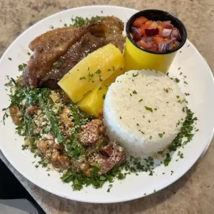 Picanha assada na chapa. Acompanha: Arroz, feijão tropeiro, batata rústica,...