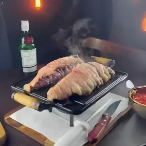 Picanha assada na chapa. Acompanha: Arroz, feijão tropeiro, batata rústica,...